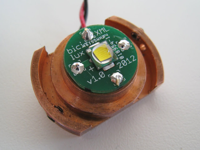 http://minisystem.blogspot.cz/ a inspirovalo mě hlavně řešení přímého chlazení XML pomocí měděného bloku, který prostupuje skrz pcb, kam se pak už jednoduše přivedou kablíky. Pří montáži LED bez staru rovnou na chladič mi tohle řešení připadá v domácích podmínkách proveditelnější než se piplat s přiletováním kablíků rovnou k XML. |